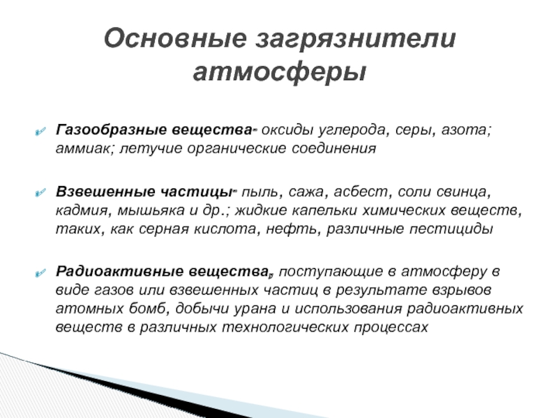 Основные загрязнители атмосферы