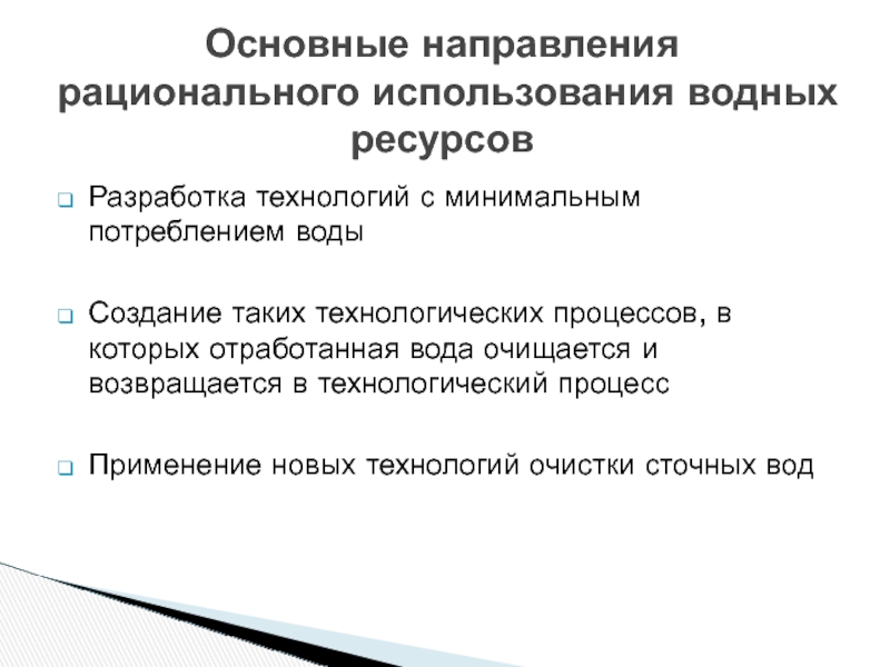 Основные направления рационального использования водных ресурсов
