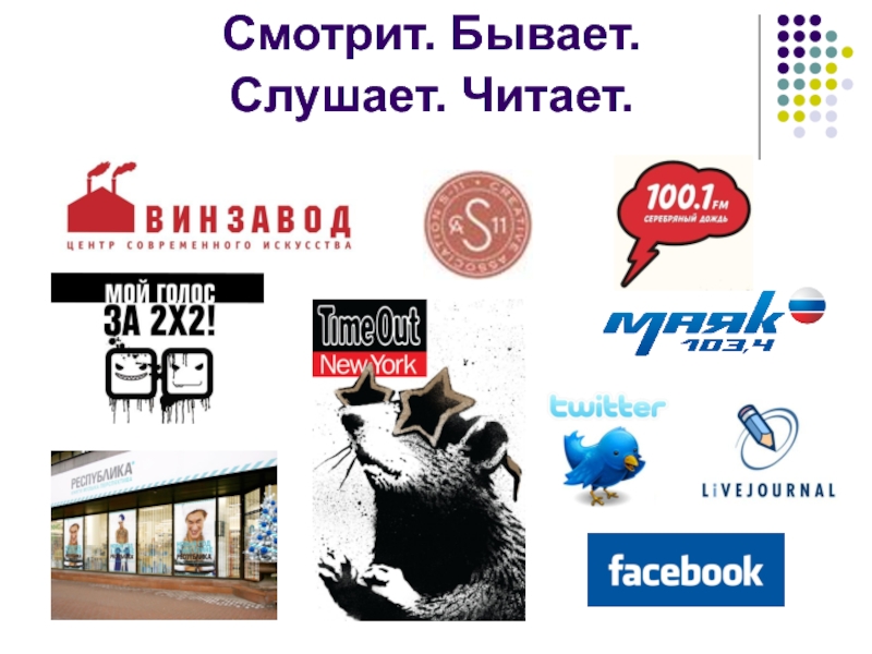 Слайд 13Смотрит. Бывает. Слушает. Читает.