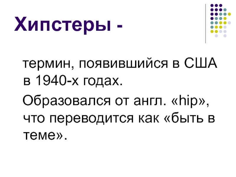 Образовался от англ. «hip», что переводится как «быть в теме».