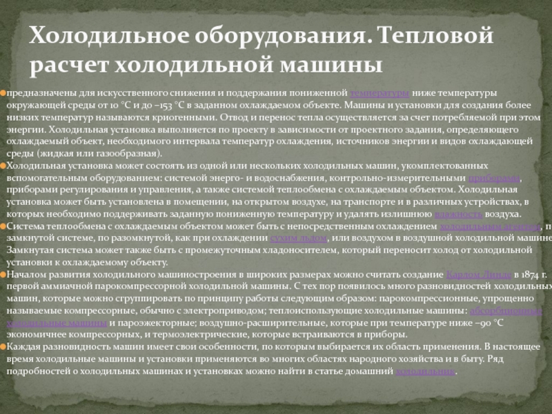 Производство искусственного холода с помощью холодильных машин называется машинным охлаждением. Его преимущества:
