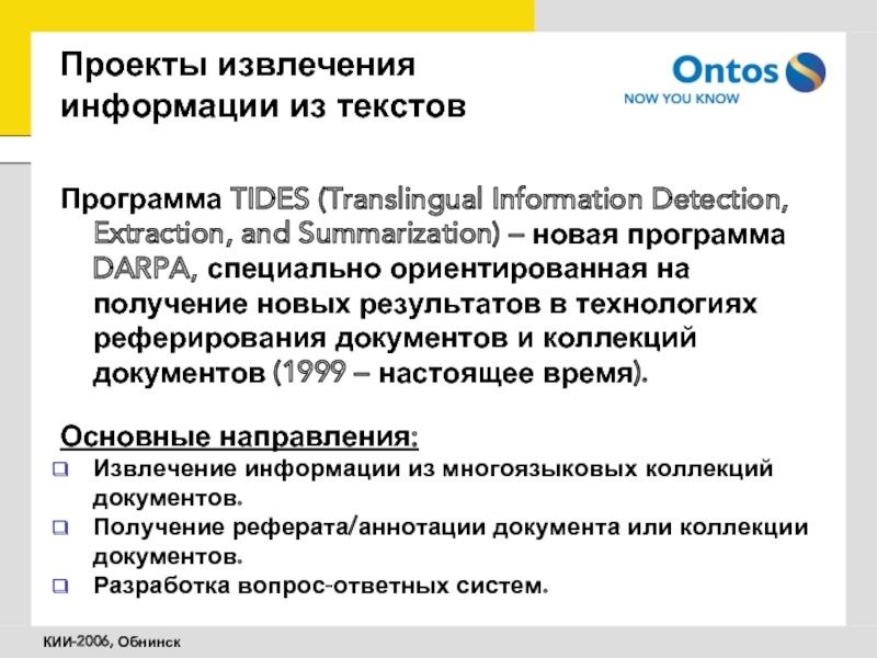 Программа TIDES (Translingual Information Detection, Extraction, and