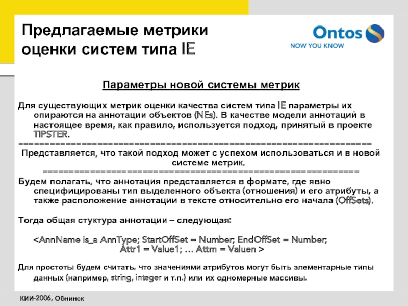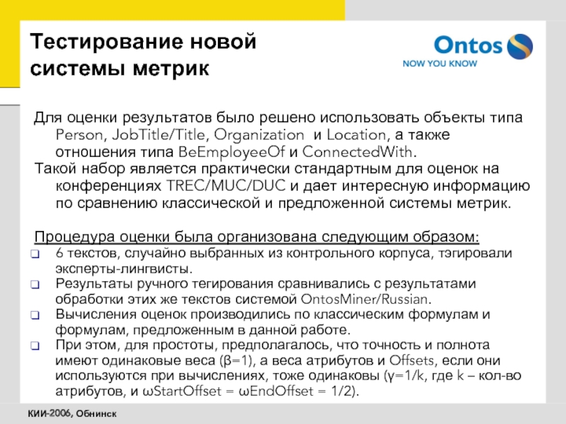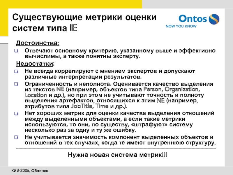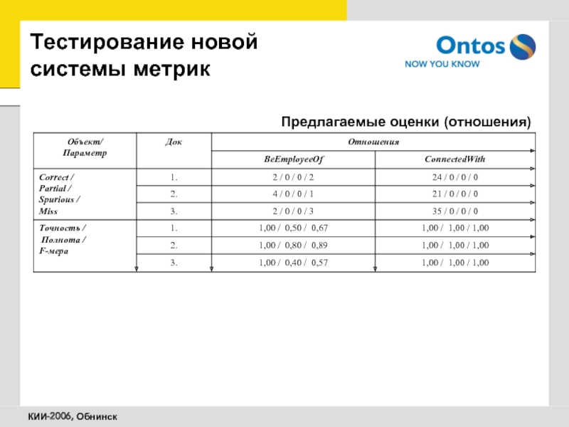 Анализ опыта использования новой системы метрик для оценки качества IE-систем, разрабатываемых в рамках проекта OntosMiner.