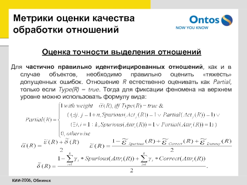отношений, как и в случае объектов, необходимо правильно оценить «тяжесть» допущенных ошибок. Отношение R естественно оценивать как Partial, только если Type(R) = true. Тогда для фиксации феномена на верхнем уровне можно использовать формулу вида: