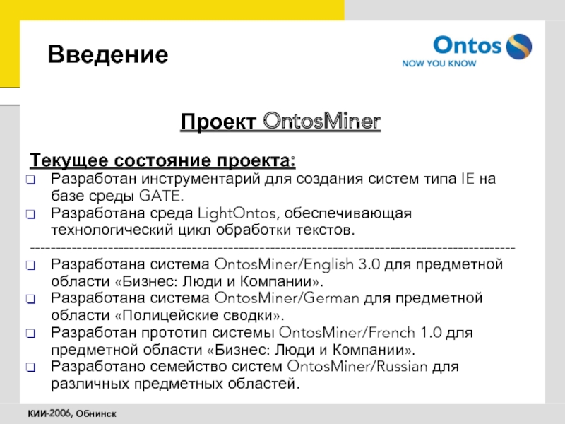 Разработано семейство систем OntosMiner/Russian для различных предметных областей.