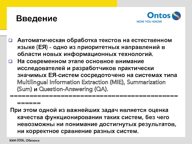 На современном этапе основное внимание исследователей и разработчиков практически значимых ЕЯ-систем сосредоточено на системах типа Multilingual Information Extraction (MIE), Summarization (Sum) и Question-Answering (QA).