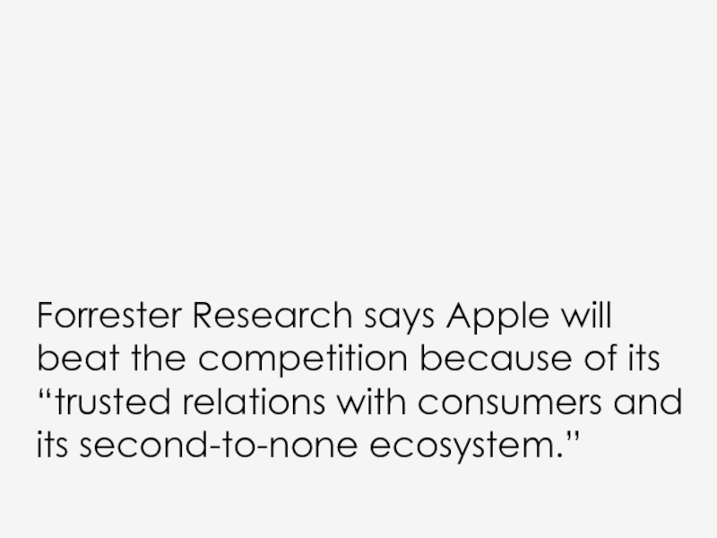 Слайд 24Forrester Research says Apple will beat the competition because of its