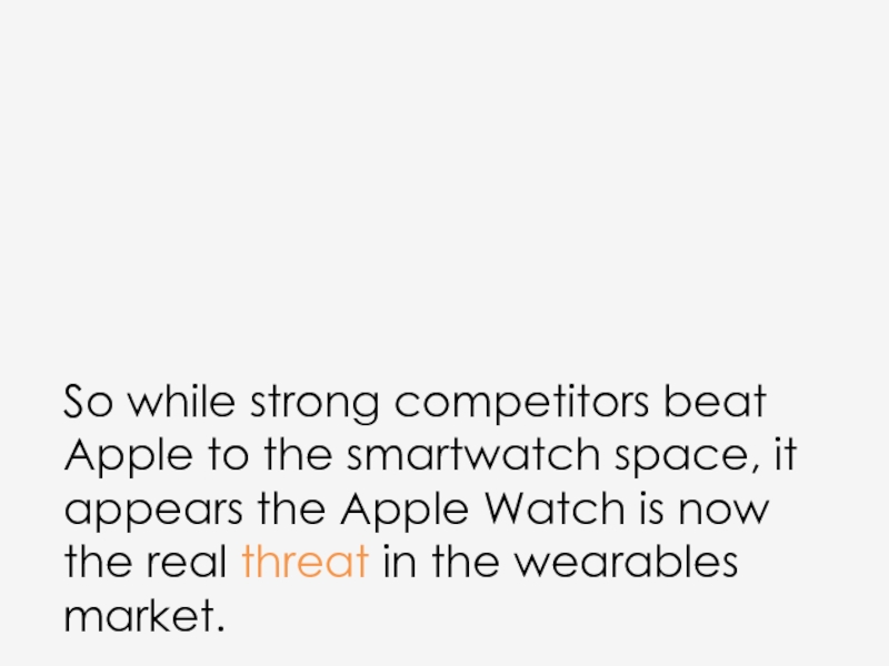 Слайд 28So while strong competitors beat Apple to the smartwatch space, it