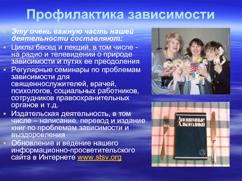 лекций, в том числе - на радио и телевидении о природе зависимости и путях ее преодоления