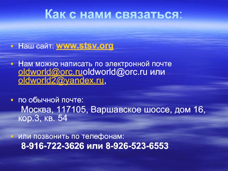 почте oldworld@orc.ruoldworld@orc.ru или oldworld2@yandex.ru,
