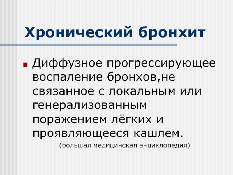 Диффузное прогрессирующее воспаление бронхов,не связанное с локальным или генерализованным поражением