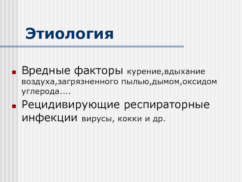 Вредные факторы курение,вдыхание воздуха,загрязненного пылью,дымом,оксидом углерода....