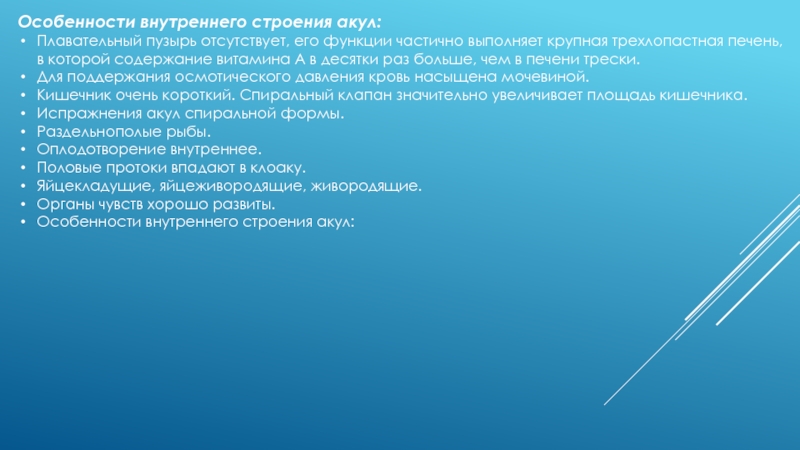 Выделительная система. Она представлена двумя длинными туловищными почками, строение которых по сравнению с теми же органами бесчелюстных несколько усложнилось: многие почечные канальцы лишены воронок и начинаются более крупными гломерулами (мальпигиевыми тельцами) — клубочками капилляров, окруженными боуменовыми капсулами. В результате этих изменений значительная часть продуктов диссимиляции поступает в канальцы не из целома, а из кровеносных сосудов. Канальцы удлинились, количество оплетающих их капилляров увеличилось. Благодаря этому в кровь возвращается больше растворенных органических веществ и воды, попавших из мальпигиевых телец в бо-уменовы капсулы. Моча удаляется через заднюю часть кишки — клоаку.