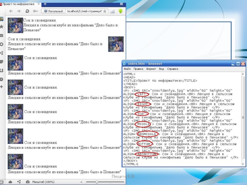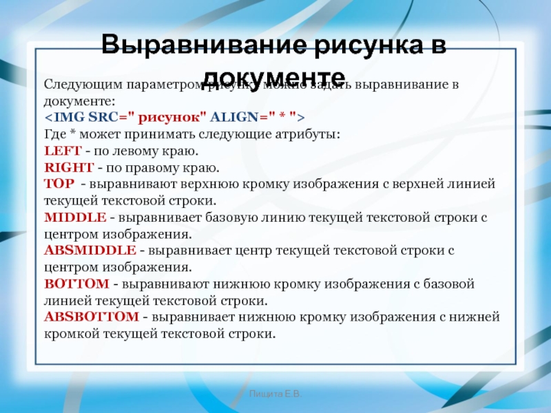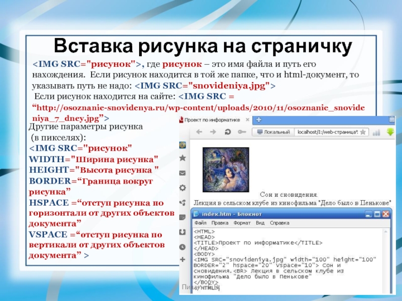 VSPACE =“отступ рисунка по вертикали от других объектов документа” >
