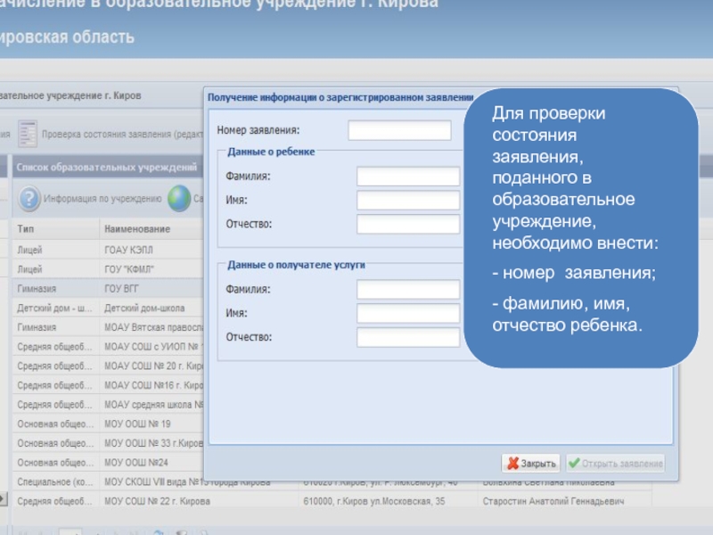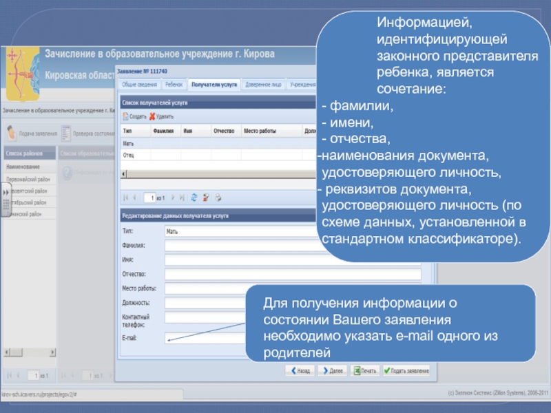 Для получения информации о состоянии Вашего заявления необходимо указать e-mail одного из родителей
