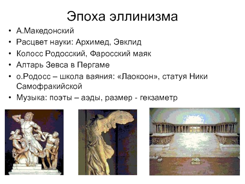 – школа ваяния: «Лаокоон», статуя Ники Самофракийской