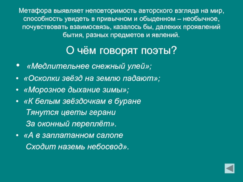 Тропы помогают автору показать явление или образ ярко, неповторимо, наглядно;