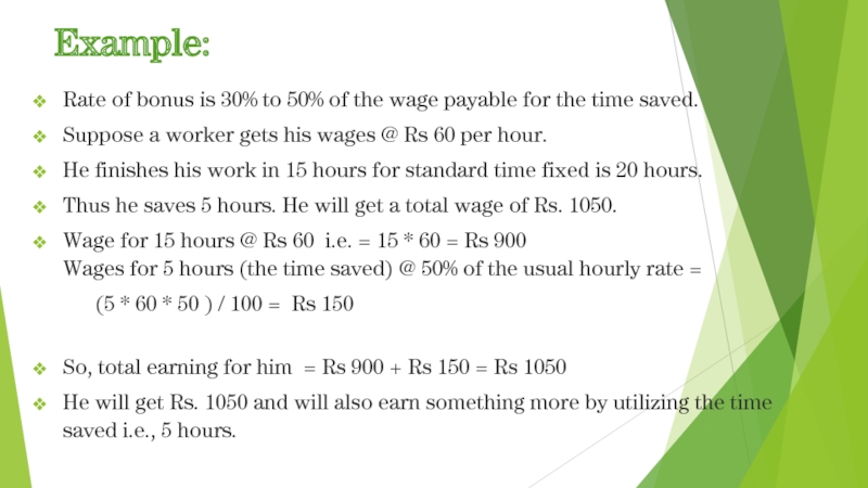 According to the plan up to 66 2/3 % the guaranteed time wages are paid to the workers, after this they are paid bonus at stated ratio of the time wages.