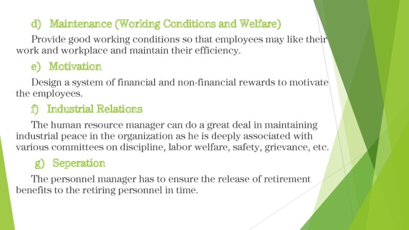 Слайд 8d) Maintenance (Working Conditions and Welfare)