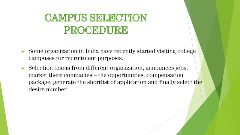 Various companies visit many colleges which have made arrangements for campus interviews and recruit candidates.