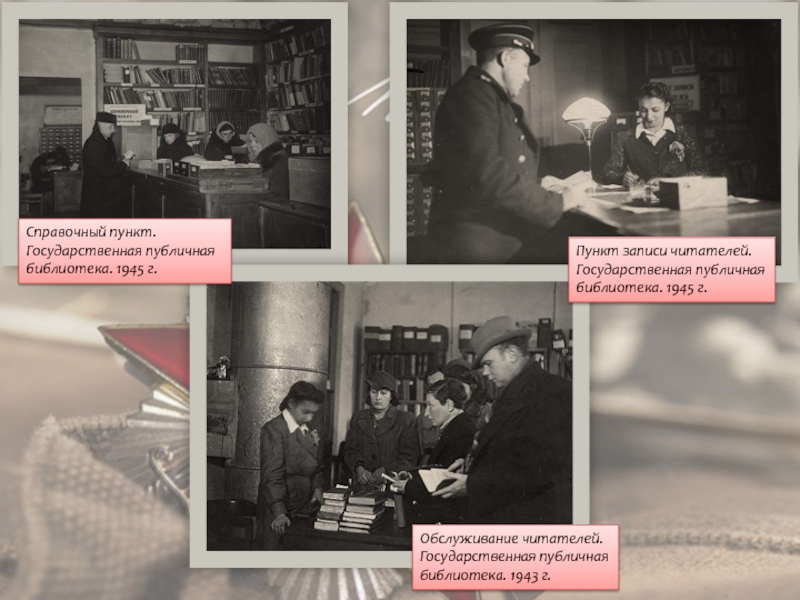Пункт записи читателей. Государственная публичная библиотека. 1945 г.