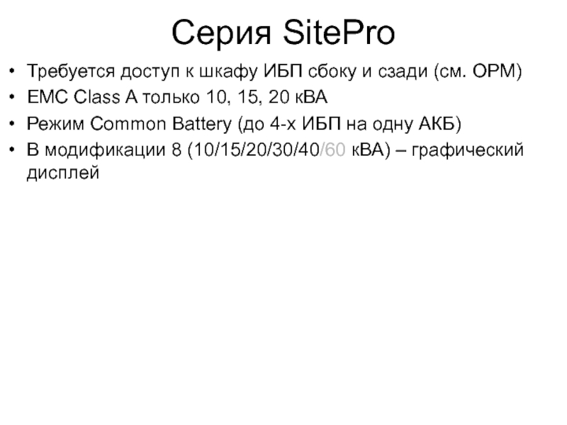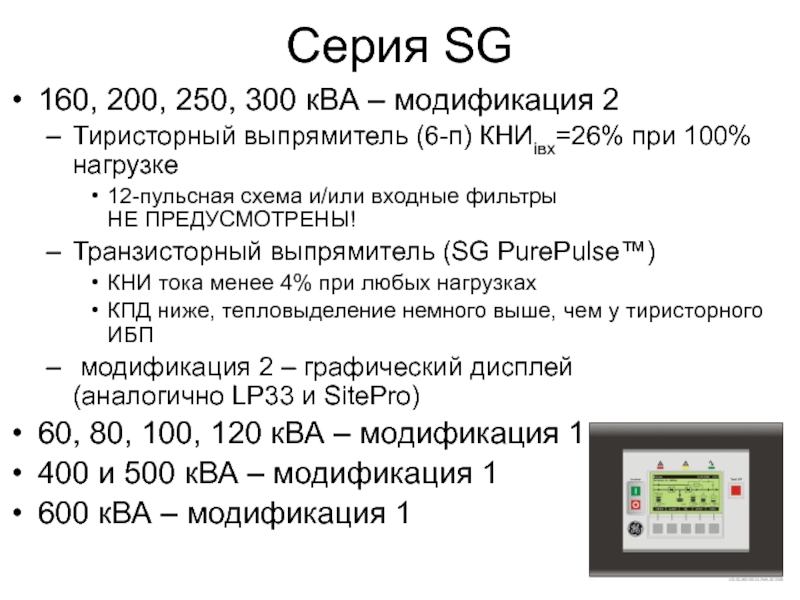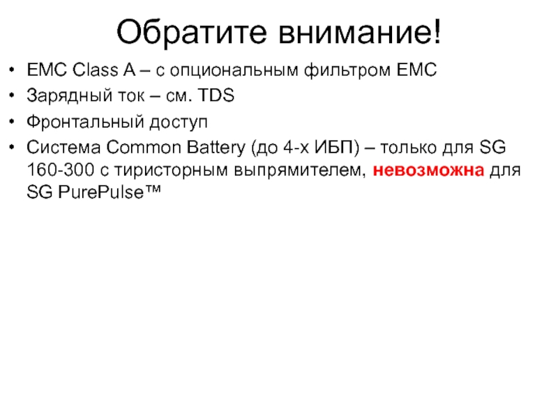 Система Common Battery (до 4-х ИБП) – только для SG 160-300 с тиристорным выпрямителем, невозможна для