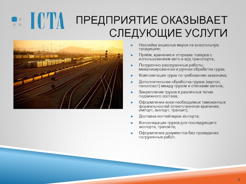Приём, хранение и отправка товаров с использованием авто и ж/д транспорта;