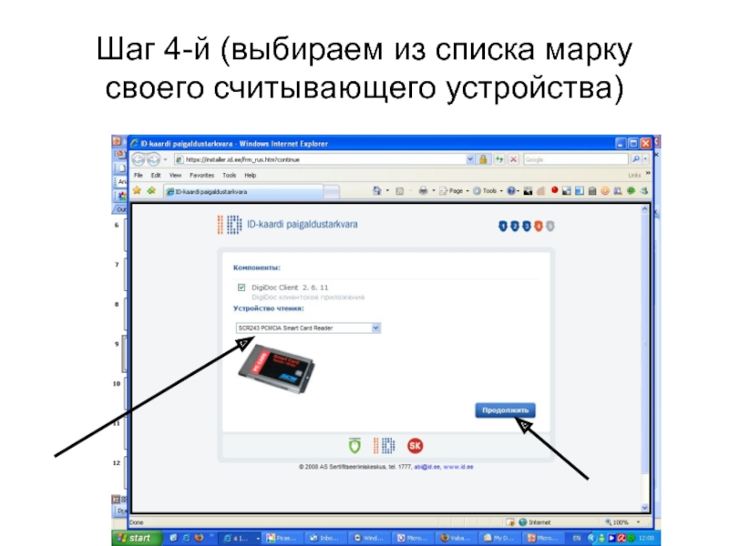 Слайд 9Шаг 4-й (выбираем из списка марку своего считывающего устройства)