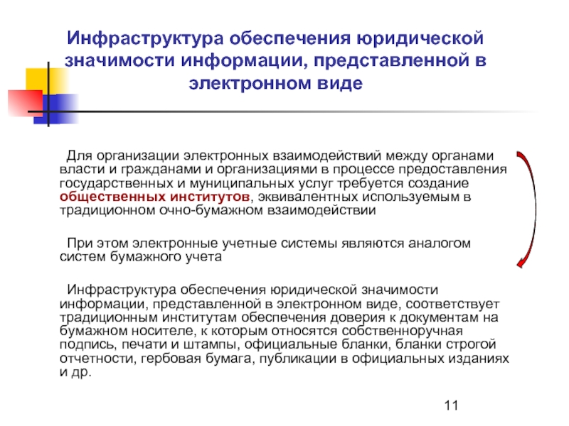 Для обеспечения всех атрибутов юридической значимости необходимы следующие взаимодополняющие общественные институты :