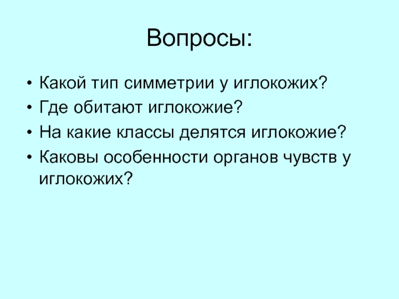 Иглокожие не похожи ни на каких других животных. Взрослые особи обладают радиальной (лучевой) симметрией.