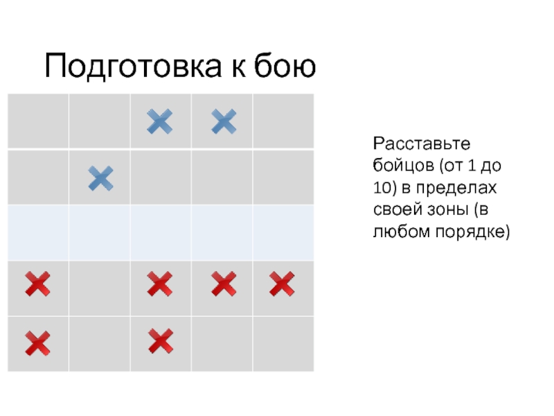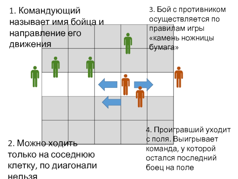 4. Проигравший уходит с поля. Выигрывает команда, у которой остался последний боец на поле