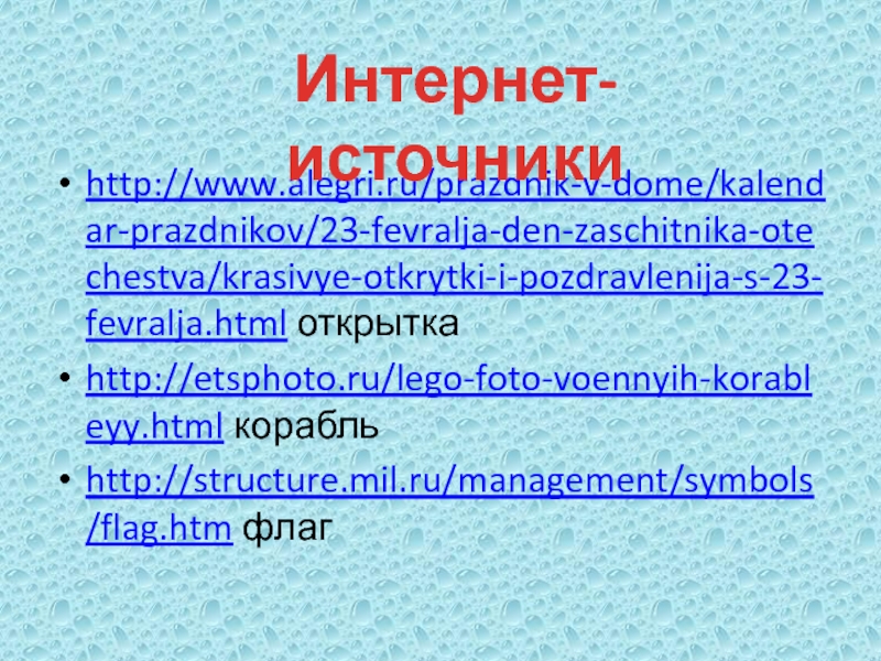 Слайд 12http://www.alegri.ru/prazdnik-v-dome/kalendar-prazdnikov/23-fevralja-den-zaschitnika-otechestva/krasivye-otkrytki-i-pozdravlenija-s-23-fevralja.html открытка