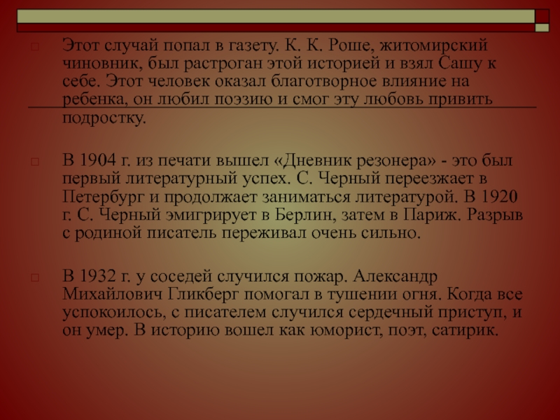 гимназию, но учился там недолго. В семье складывались не совсем хорошие отношения, ребенок это очень сильно переживал, кроме того, он почти не знал материнской ласки. Все это подтолкнуло его к побегу из дома, скитаниям, попрошайничеству, нищенствованию. Саша нашел в себе силы вернуться домой после всех трудностей и злоключений, но родители не приняли его назад в семью.