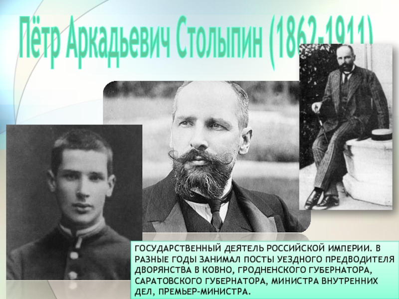 Слайд 5Пётр Аркадьевич Столыпин (1862-1911)