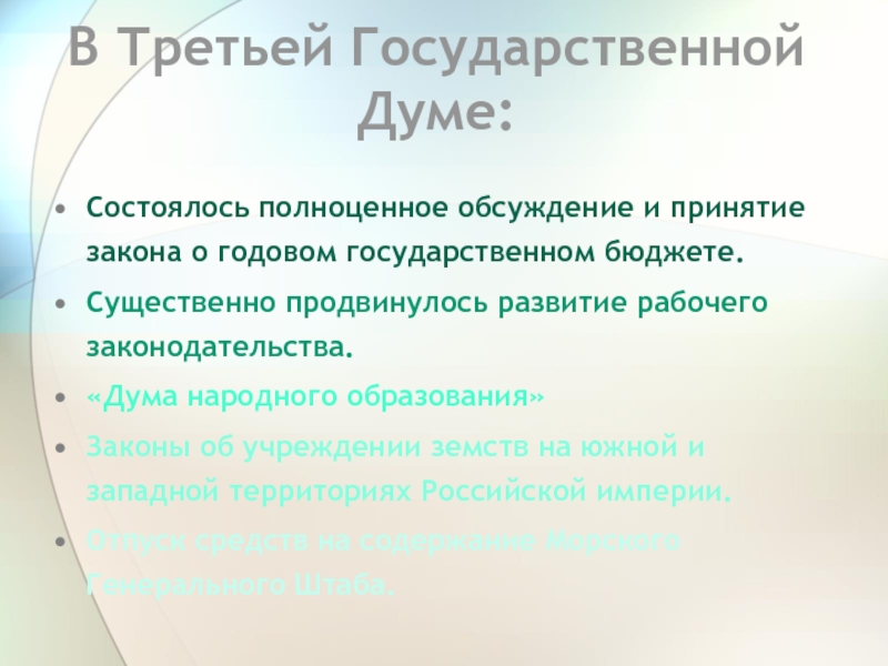 Слайд 13В Третьей Государственной Думе: