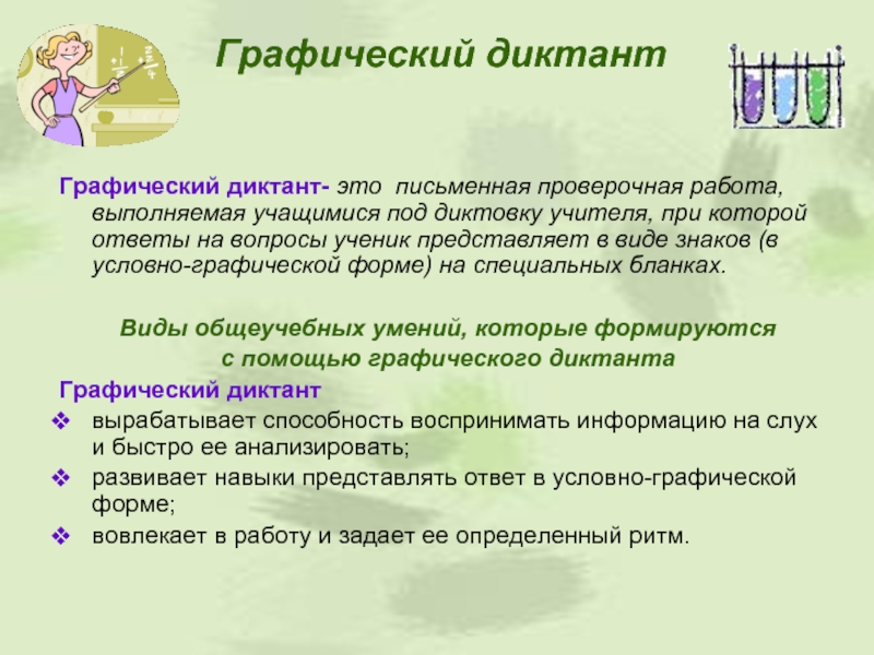 Графический диктант- это письменная проверочная работа, выполняемая учащимися под диктовку