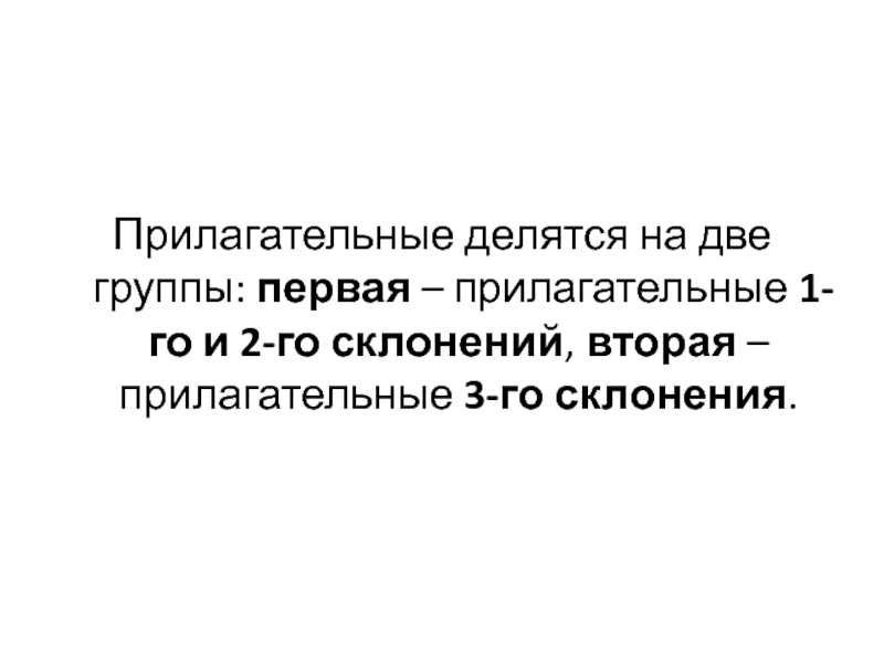 Слайд 3Прилагательные делятся на две группы: первая – прилагательные 1-го и 2-го