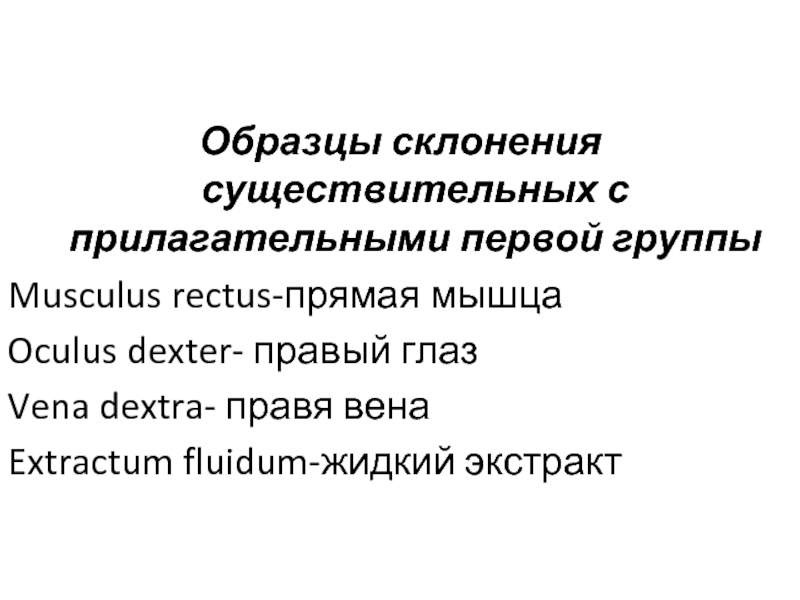 Слайд 12Образцы склонения существительных с прилагательными первой группы