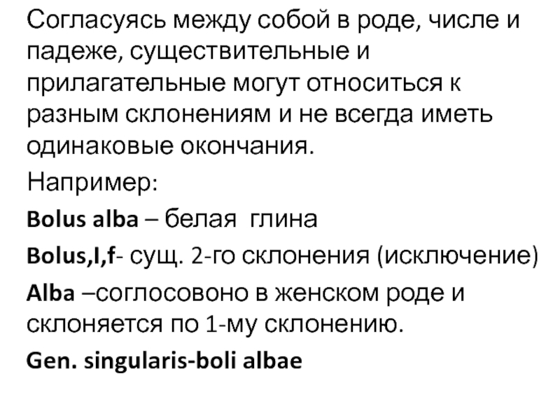Имена прилагательные в латинском языке согласуются в роде, числе и