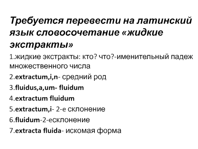 Слайд 15Требуется перевести на латинский язык словосочетание «жидкие экстракты»