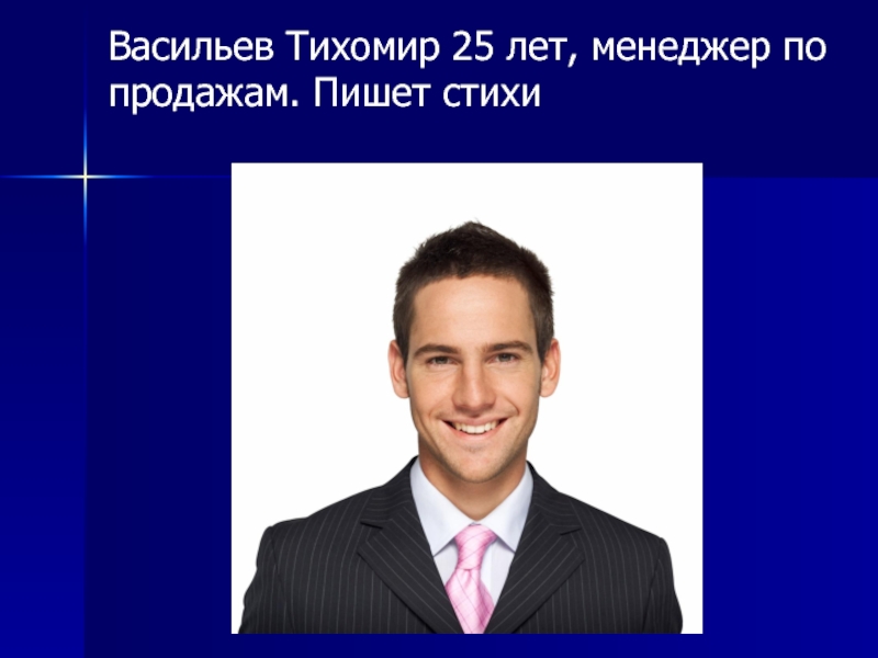 Слайд 6Васильев Тихомир 25 лет, менеджер по продажам. Пишет стихи