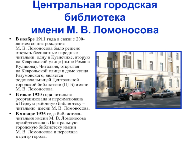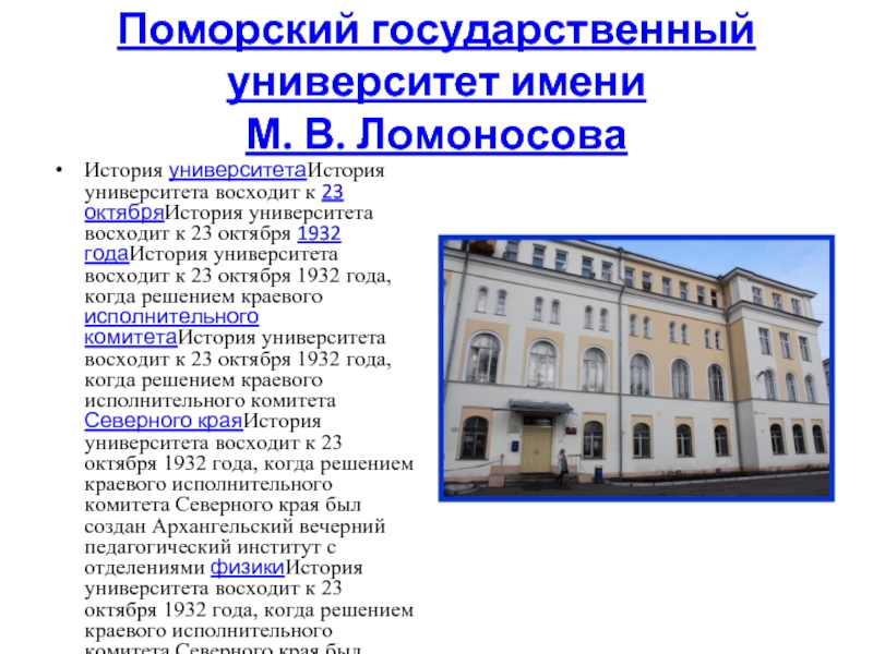 На месте, где сегодня стоит лицей, раньше находился Благовещенский храм (при котором действовала воскресная школа), просуществовавший до 1931 года. Затем его разобрали и на этом месте разбили сквер. В 1935 году построили госпиталь, принимавший в годы Великой Отечественной войны раненых, вскоре ставший одной из больниц города. Позднее, здание было отдано в пользование городской школы № 19. Приказом областного управления народного образования № 481 от 2 июля 1990 года средняя школа № 19 была реорганизована в Архангельский городской лицей имени М. В. Ломоносова.