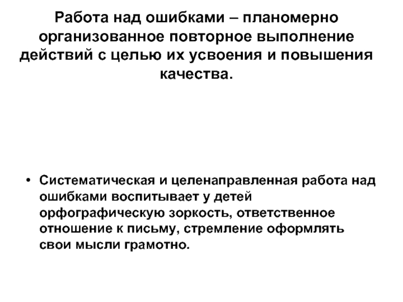 Систематическая и целенаправленная работа над ошибками воспитывает у детей орфографическую зоркость, ответственное отношение к письму, стремление оформлять свои мысли грамотно.
