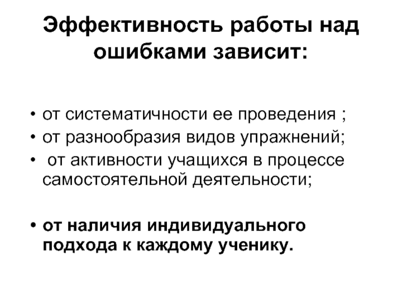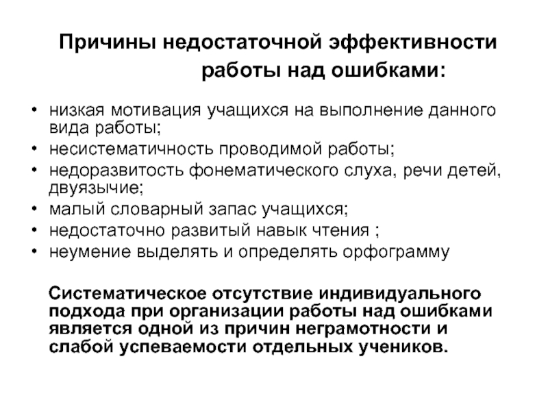 Систематическое отсутствие индивидуального подхода при организации работы над ошибками является одной из причин неграмотности и слабой успеваемости отдельных учеников.