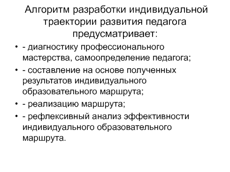 Слайд 28 Алгоритм разработки индивидуальной траектории развития педагога предусматривает: