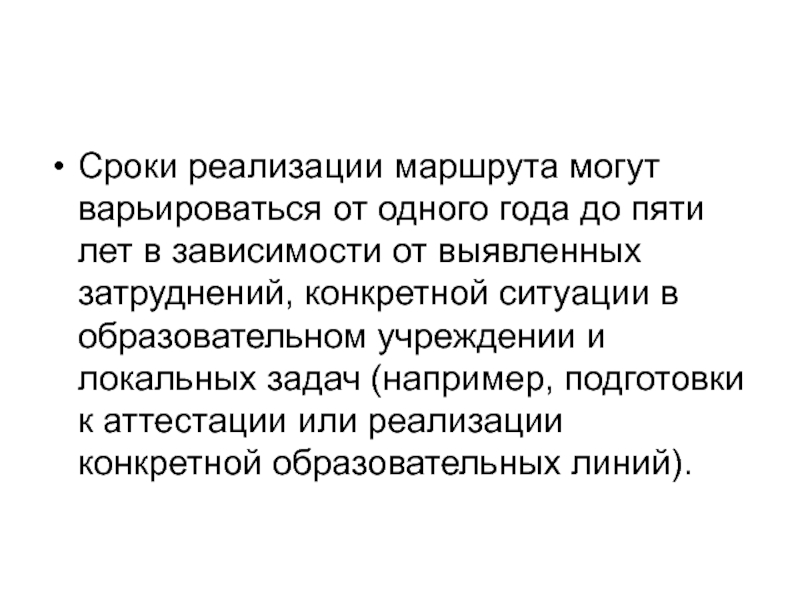 Сроки реализации маршрута могут варьироваться от одного года до пяти лет