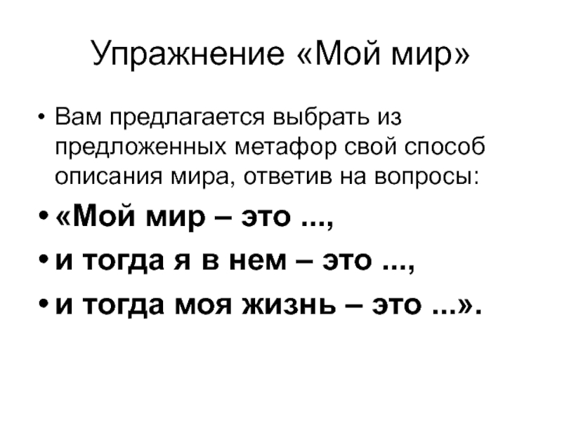 Слайд 20Упражнение «Мой мир»
