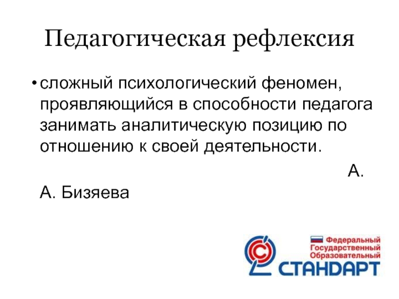 сложный психологический феномен, проявляющийся в способности педагога занимать аналитическую позицию