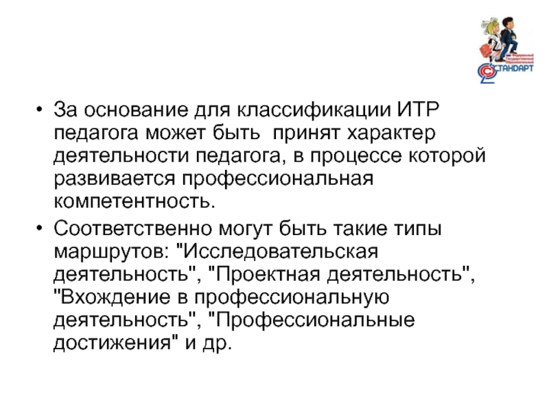 Слайд 23За основание для классификации ИТР педагога может быть принят характер деятельности