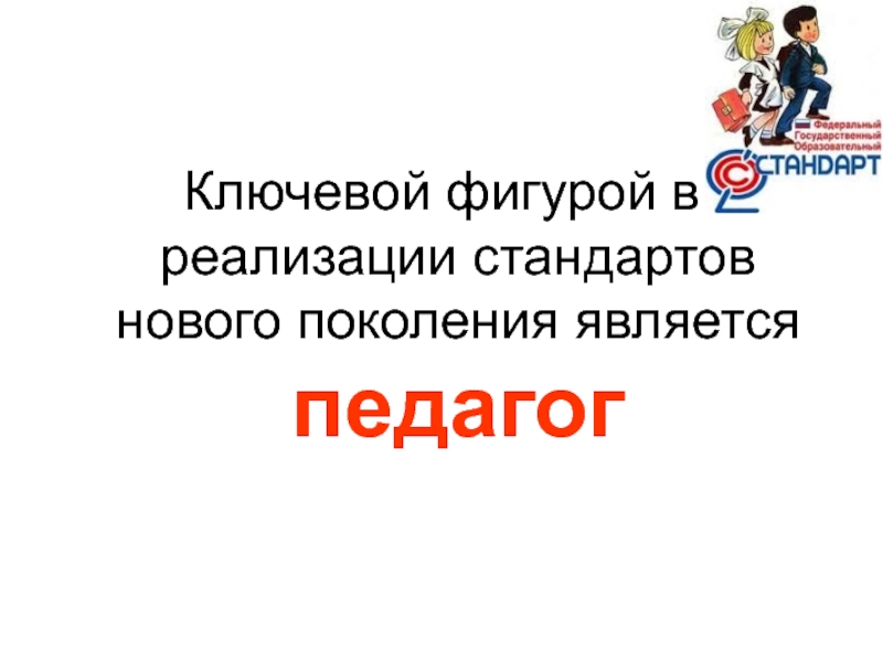 Слайд 2Ключевой фигурой в реализации стандартов нового поколения является педагог